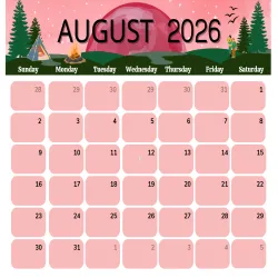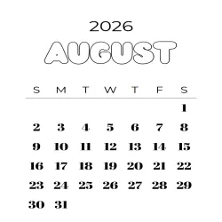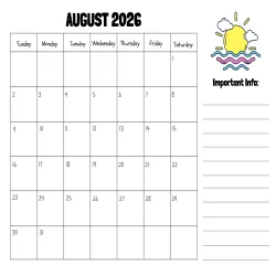 Free August 2026 Calendar