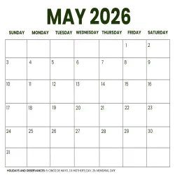 Free May 2026 Calendar